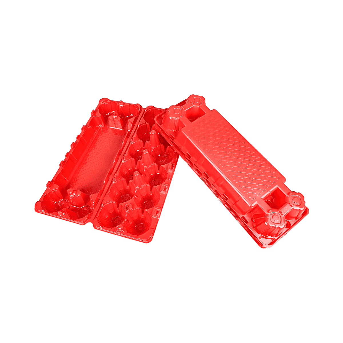 這些雞蛋紙箱具有醒目的啞光紅色表面,美觀大方。但它們提供的不僅僅是好看。每個紙箱都由優質PET塑料(聚對苯二甲酸乙二醇酯)制成,以其高抗沖擊性、輕質性能和可回收性而聞名。有光澤的啞光顏色增強了它們的耐用性,使它們能夠在不褪色的情況下持續使用。紅色色調不僅散發出經典的誘惑力,而且使這些紙箱很容易在冰箱或貨架上被發現。